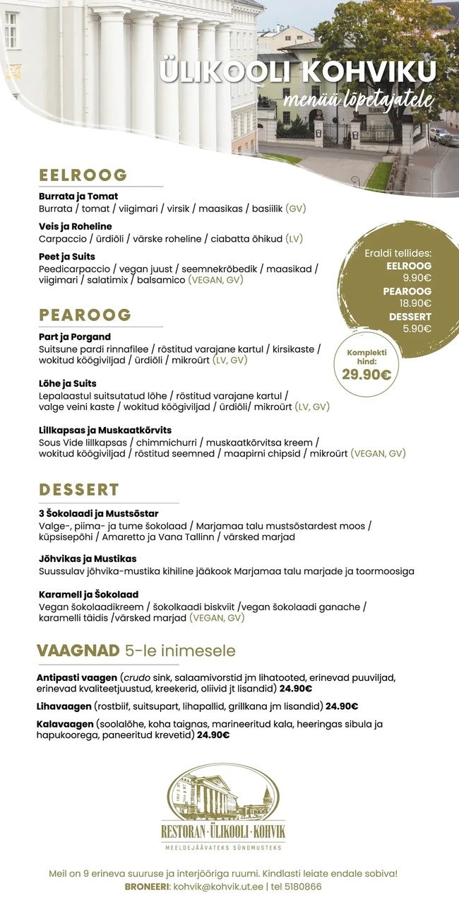 Oleme loonud lõpetajatele spetsiaalse 3-käigulise menüü,