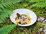Hirve tar-tar, käsitöö foccaccia, kuuseokka kreem,